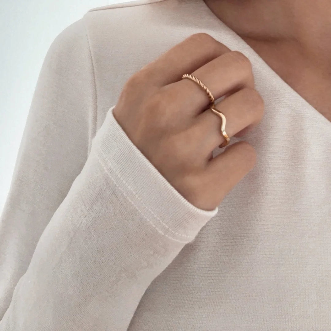 wavy ring and twisted ring gold made in waterproof stainless steel from icône